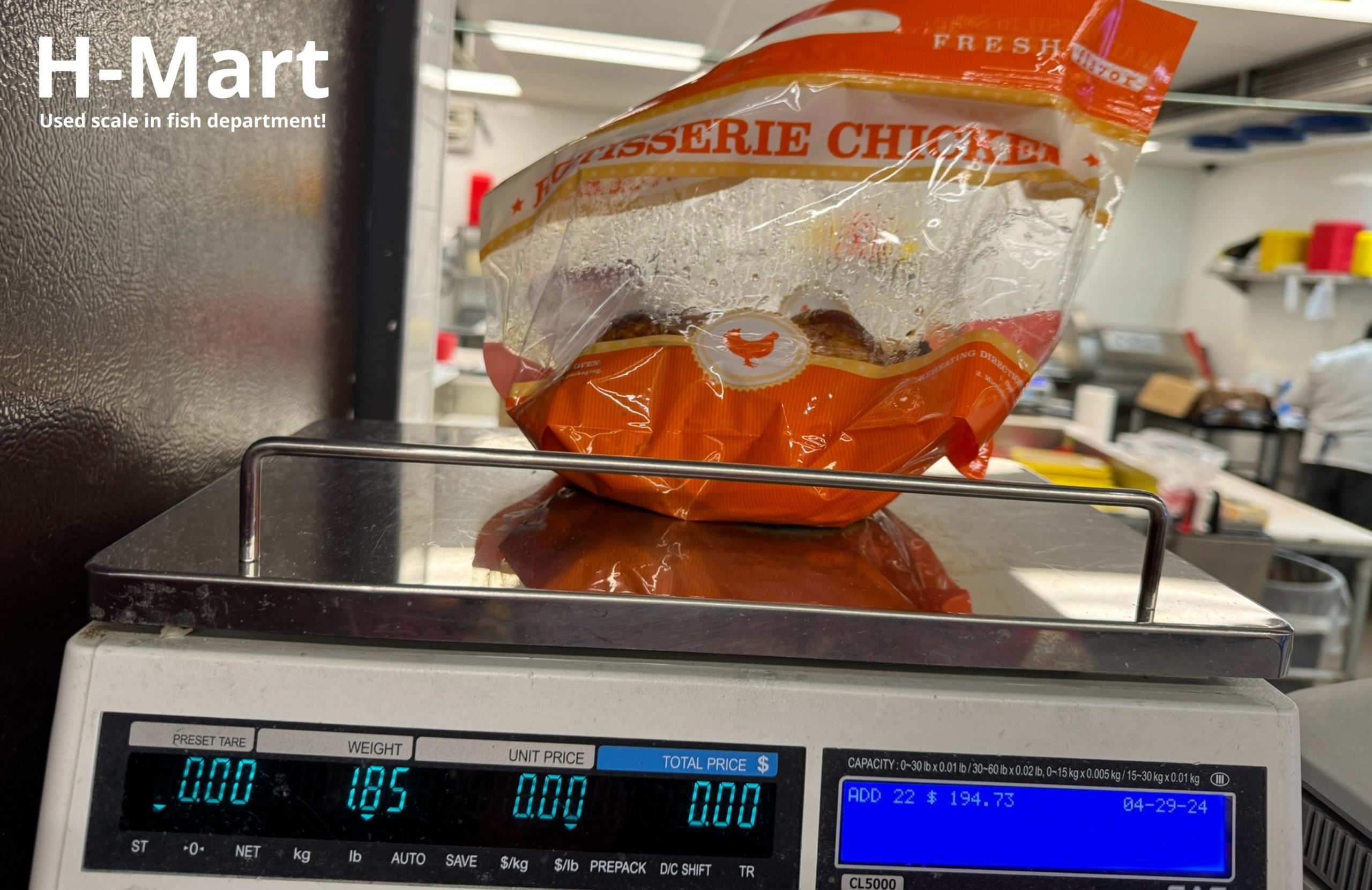 Above: We had to carry the chicken to the fish department because H-Mart places the chicken far away from any scale in sight LOL…